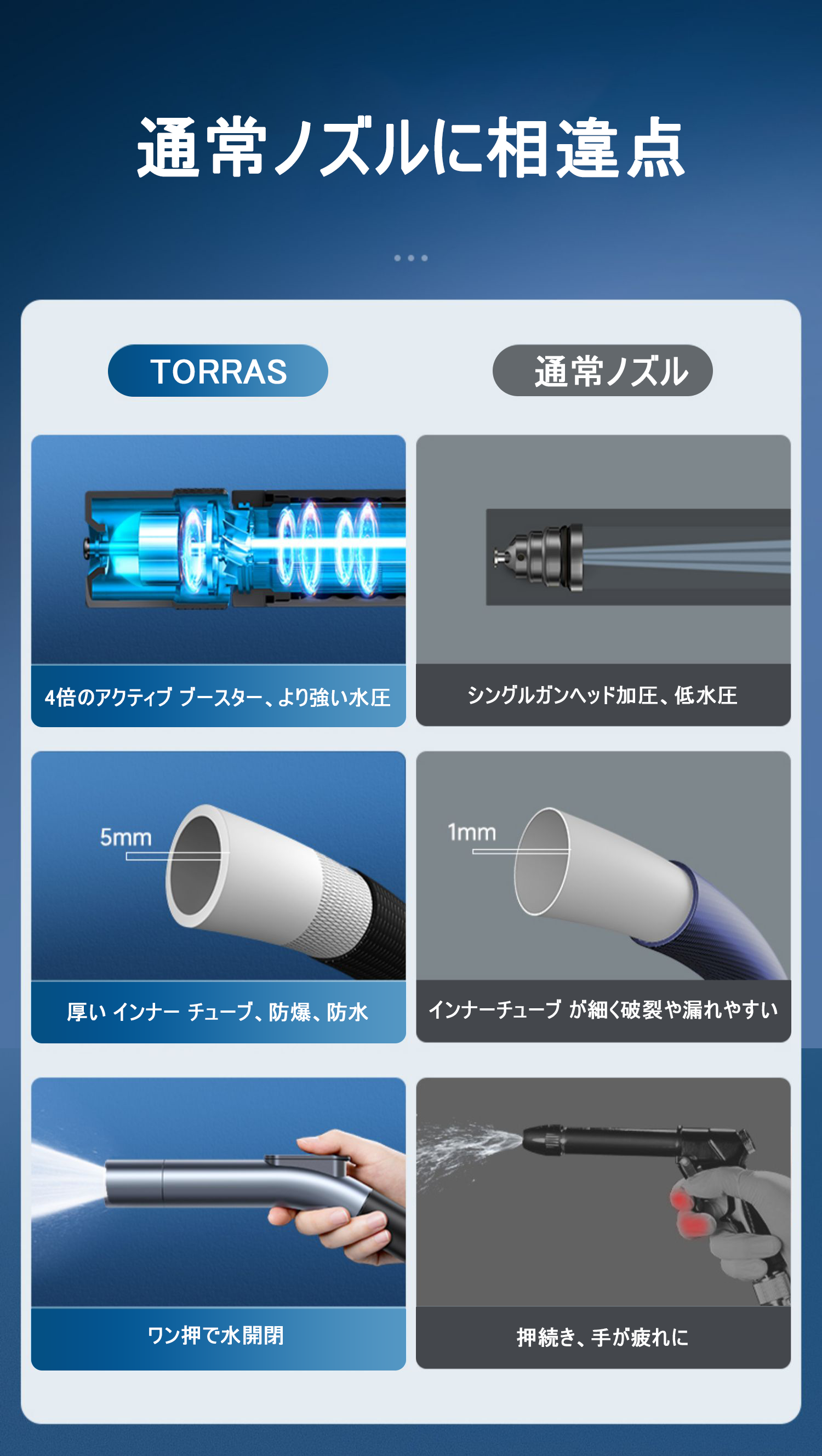 そんな思って方にもうこの悩みを心配する必要ない為!今回の【押すだけで洗車から水撒きまでこれの1台で完了!高圧洗浄ノズル『TORRAS』】をご紹介させて頂きたいと思います。