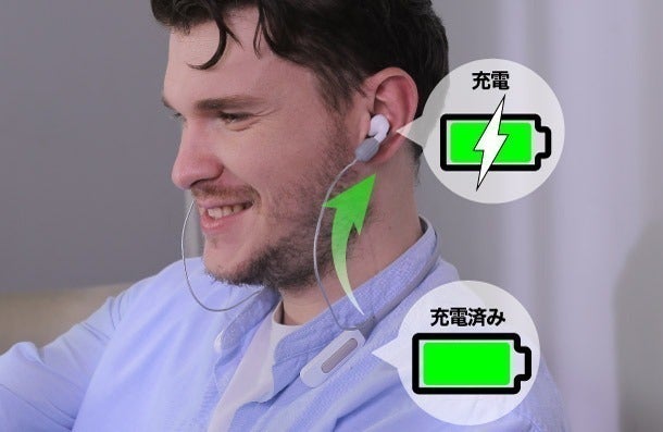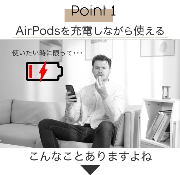 ネックストラップ状の本体に備わったバッテリーをAirPodsのバッテリーと併用して使用できる為、AirPodsの充電がなかったとしても大丈夫!