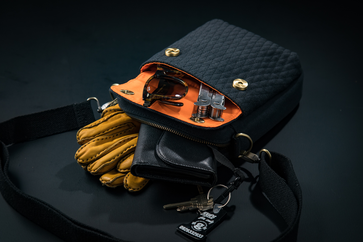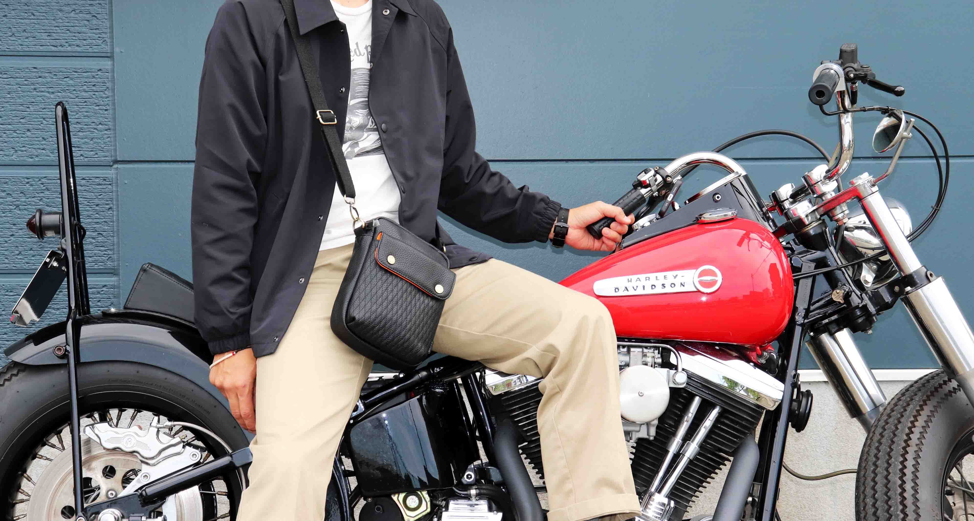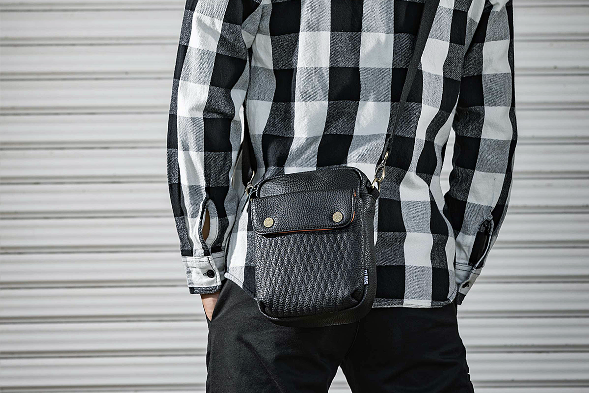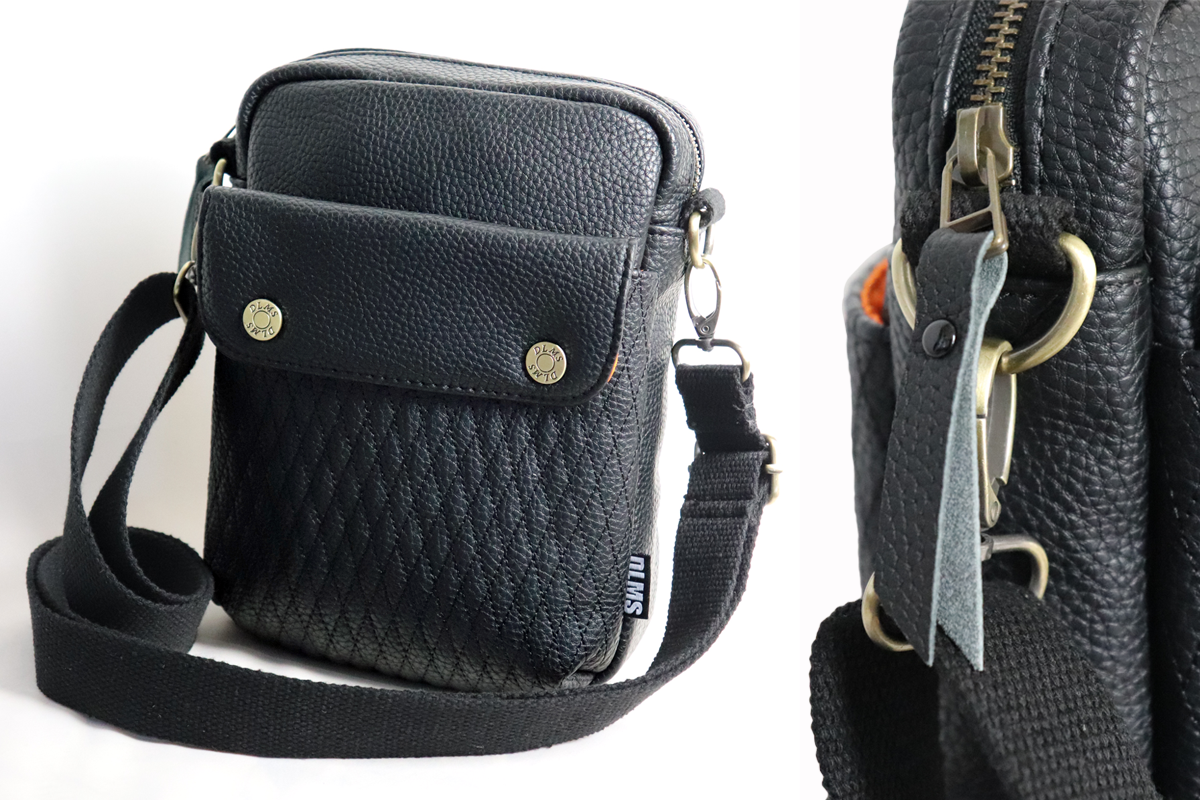 プロジェクトは、バイクにまたがっている時、街中を歩いている時、ペットとの散歩中でもスタイリッシュ&機能的で、よりカッコいいバッグを持ってもらいたいと思い、前面部に菱形のダイヤステッチを施した、デザインに特徴のある小さめのショルダーバッグを考案しました。