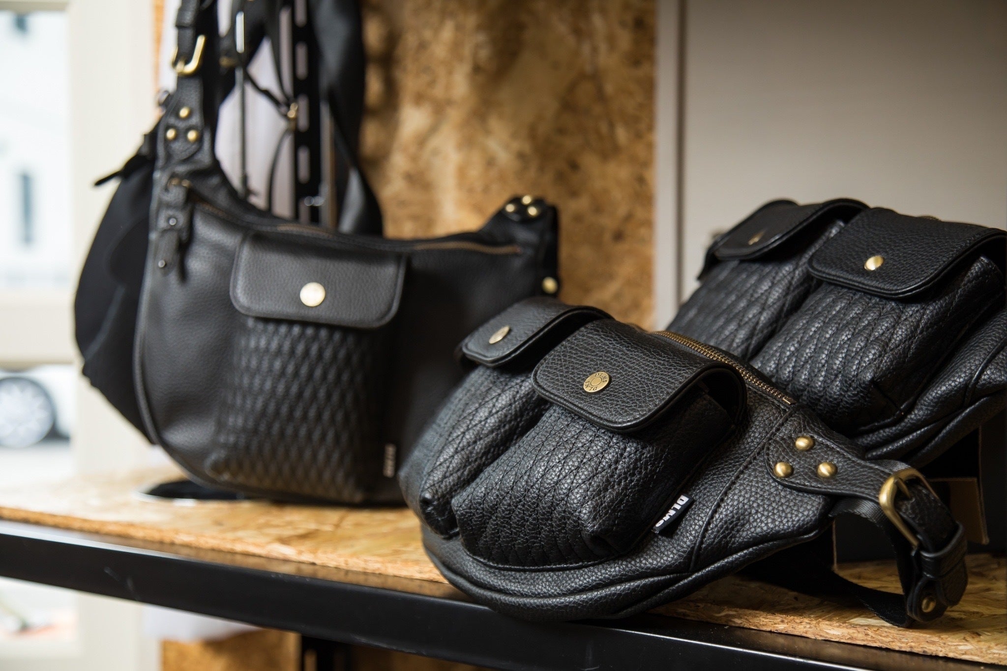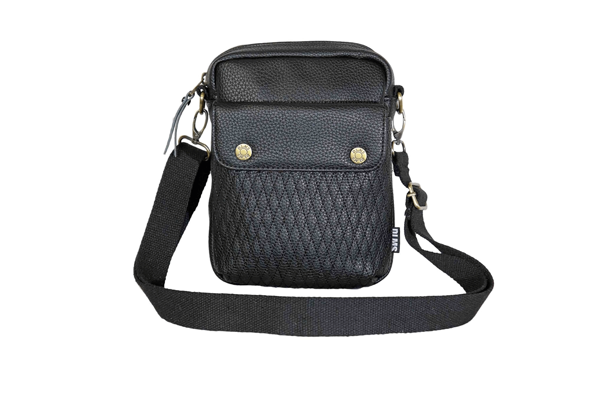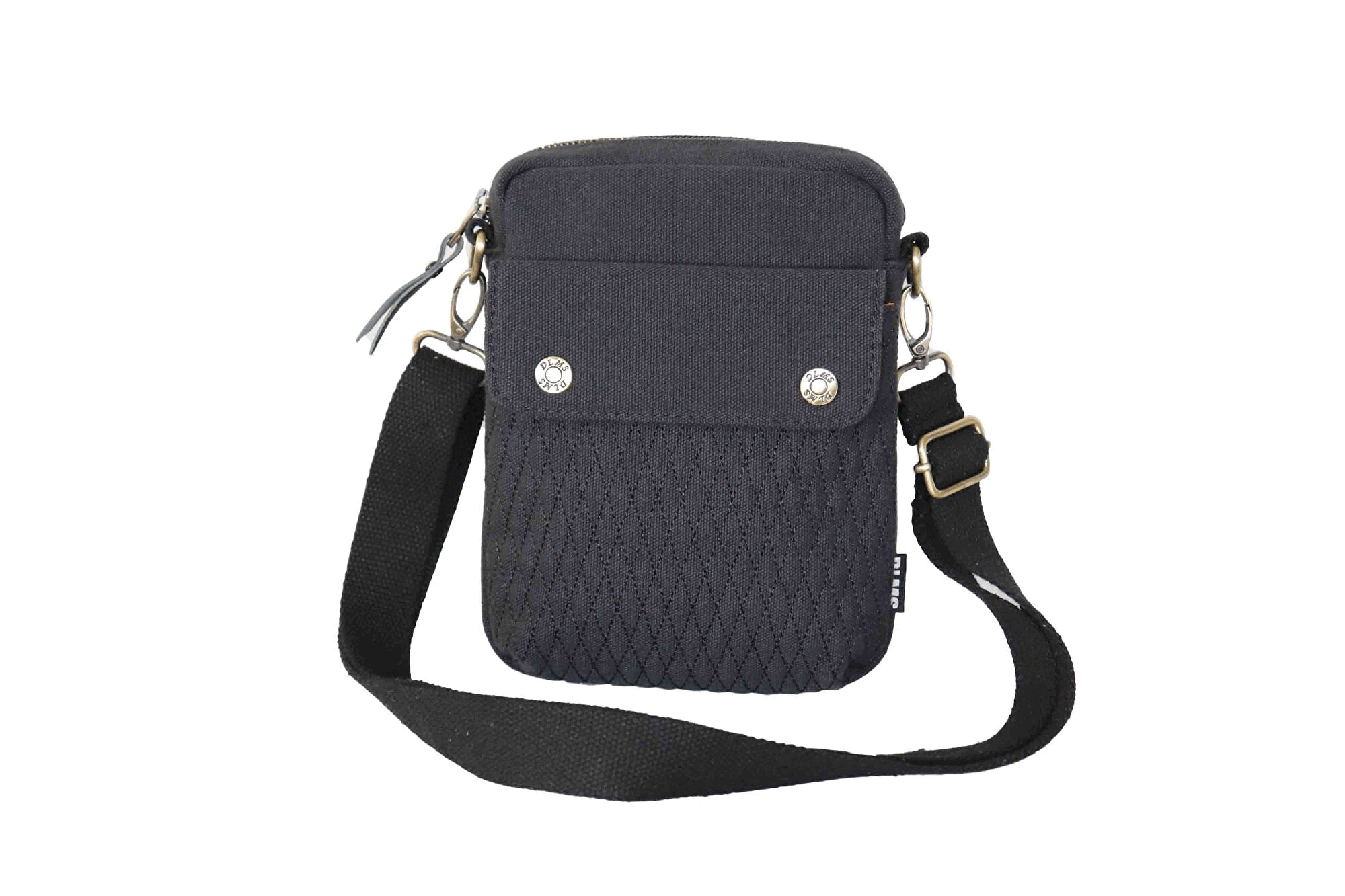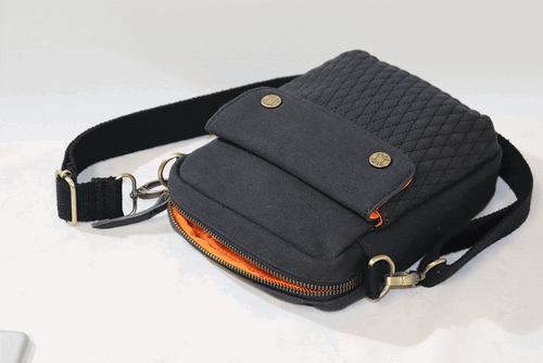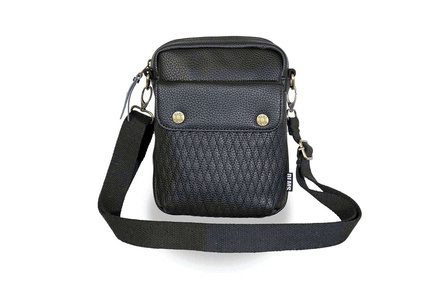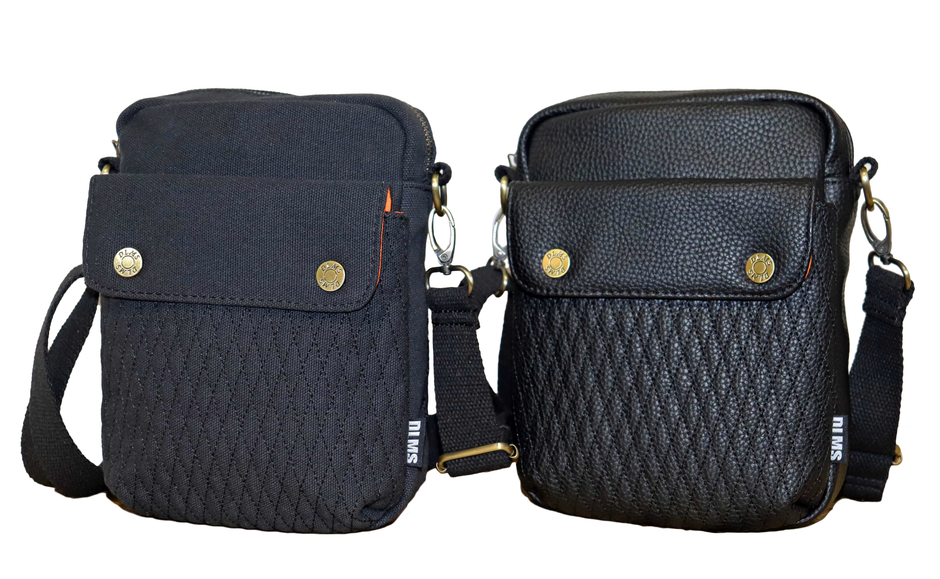 バッグの素材はヴィーガンレザー(マイクロファイバー革)とキャンバス(帆布)の2タイプのショルダーバッグ。