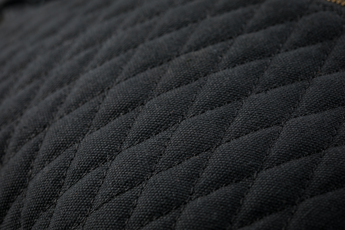 キャンバスは帆布と呼ばれる綿の生地です。レザーに比べると本体の黒の表情は落ち着いた色合いです。