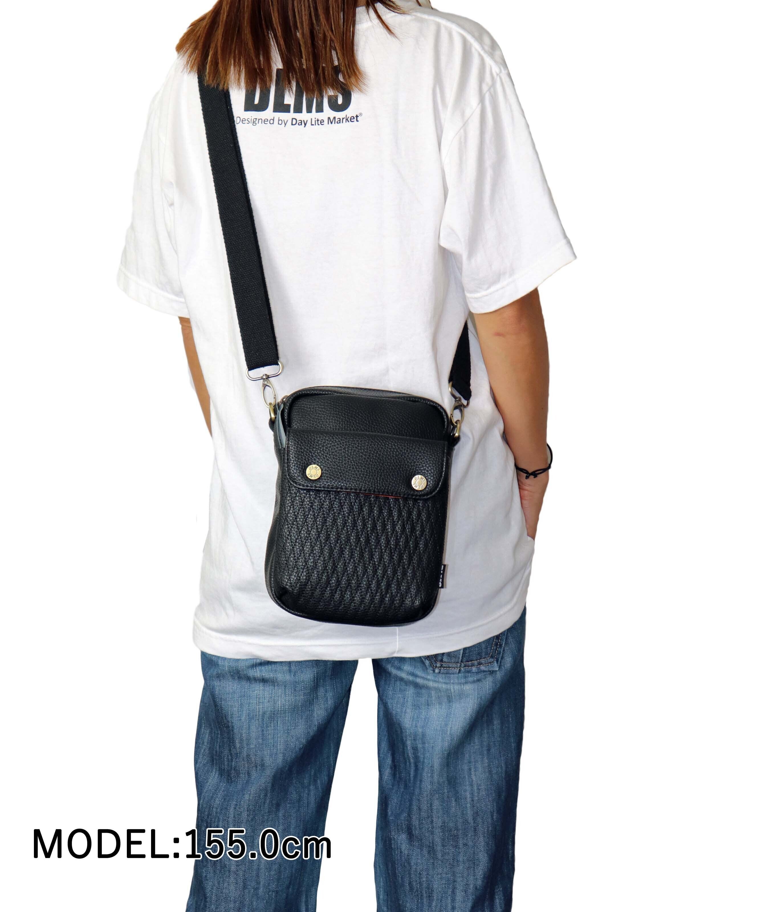 こちらはDLMSブランドから続く『OLD is NEWシリーズ』ライダースに特化した「存在感・サイズ・機能」をコンセプトに作られた、ダイヤモンドステッチが印象的なショルダーバッグ ’Black heart'です。