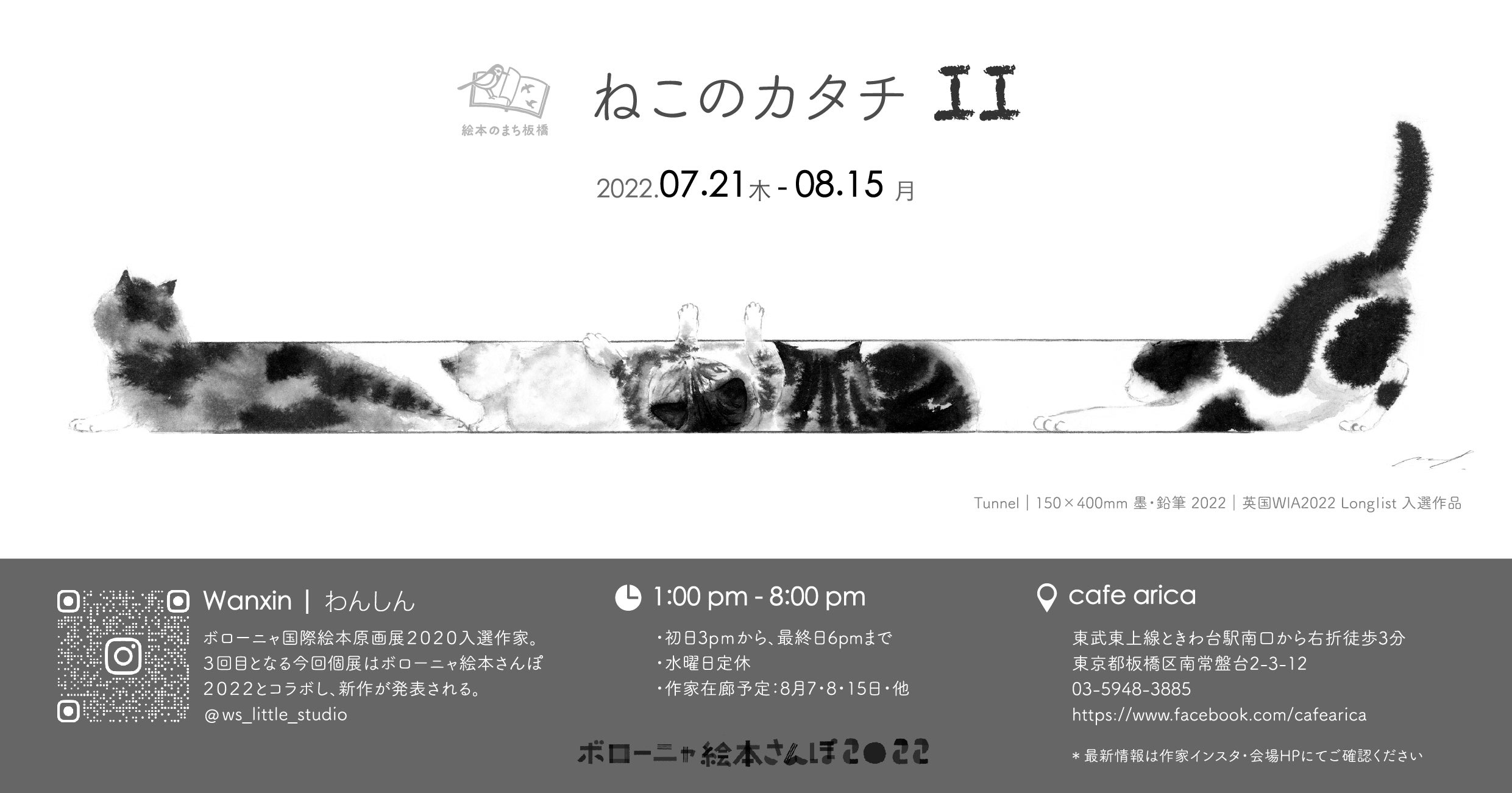 2022 8月 個展『ねこのカタチII』cafe arica 東京(板橋区、板橋区立美術館協賛)