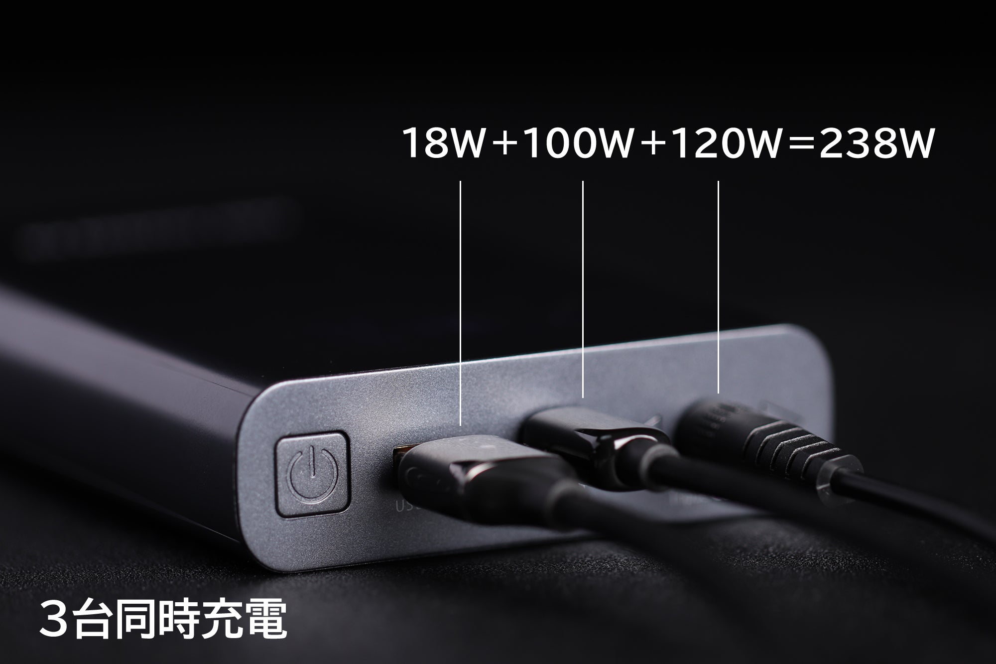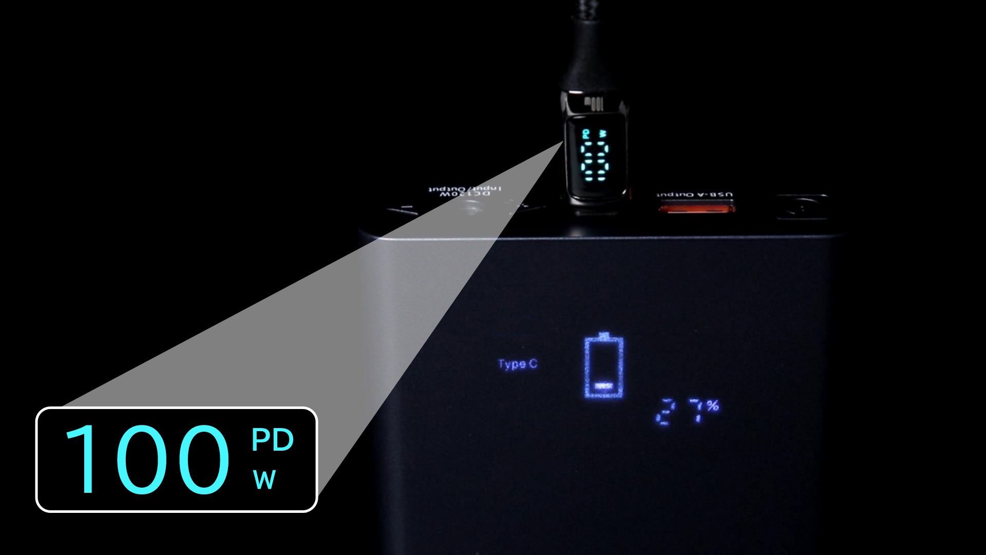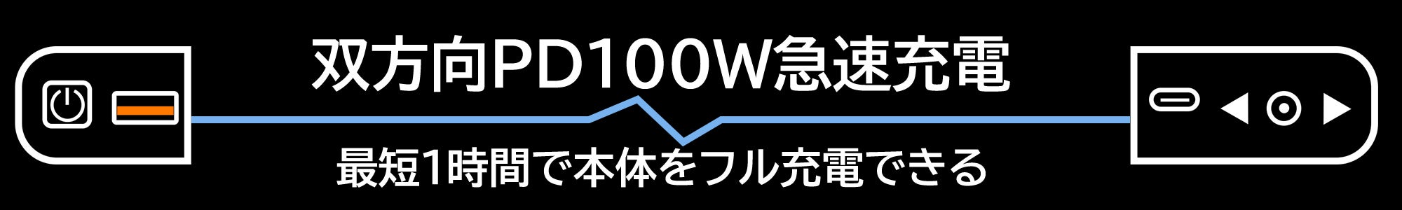 ■双方向PD100W急速充電、本体へのフル充電がわずか1時間