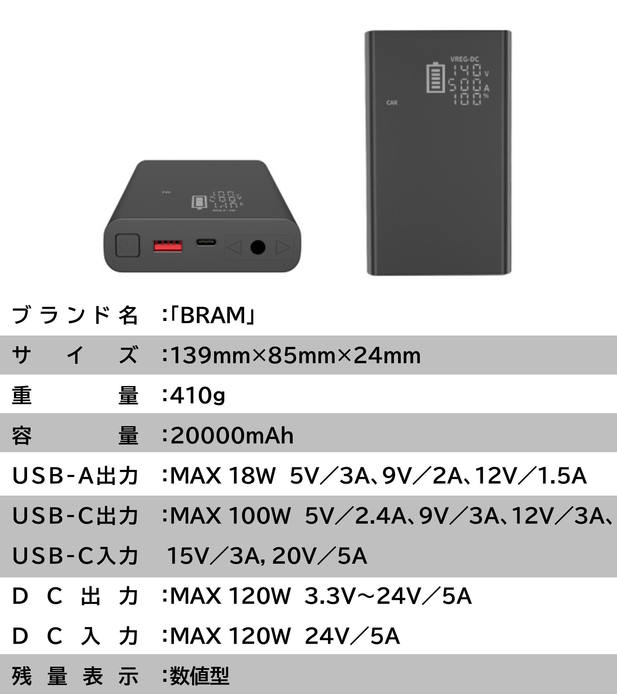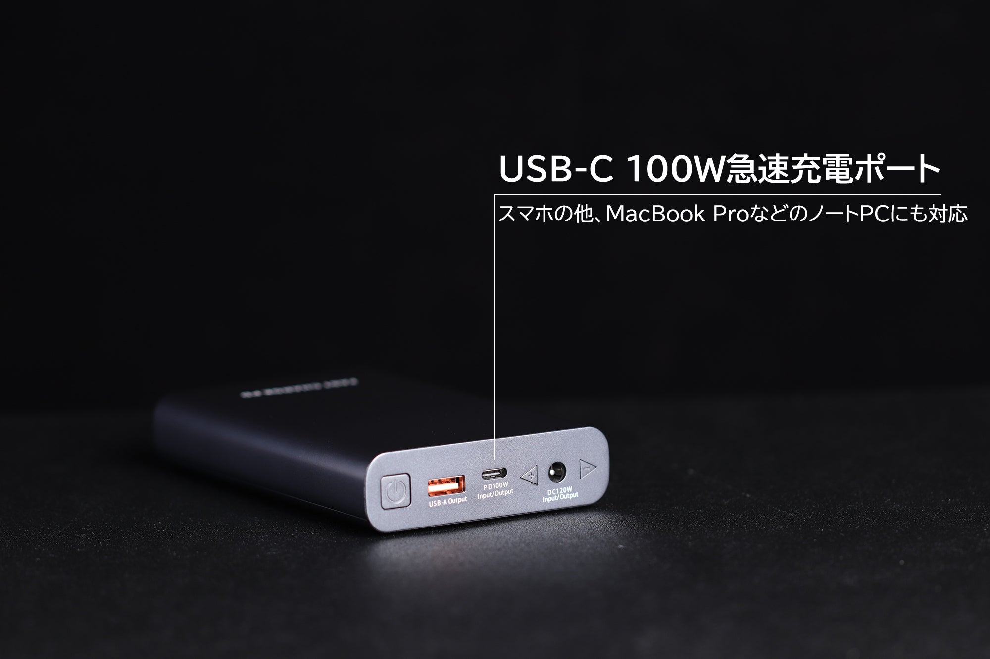 「BRAM」は出力100WのUSB-Cポートが搭載されたため、ノートパソコンへの急速充電も可能。外出や出張先に電源がない場所も安心してパソコン仕事ができます。