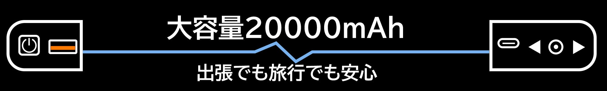 20,000mAhの大容量なら出張や旅行などの時にスマホのバッテリー切れを心配する必要はありません。