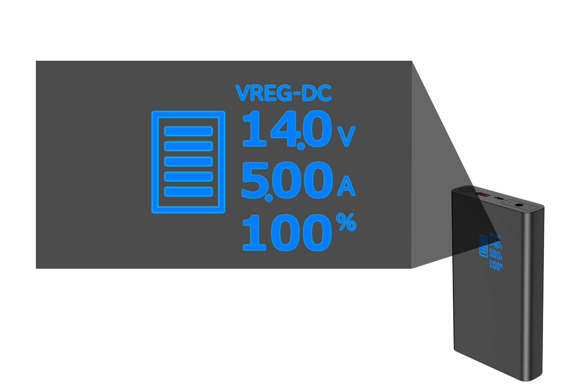 電源ボタンを2秒押せば、DCポートの出力電圧を表す数字が点滅し始め、ボタン「+」と「-」ボタンで、出力電圧をデバイスの適用した数値に正確に調整することができます。