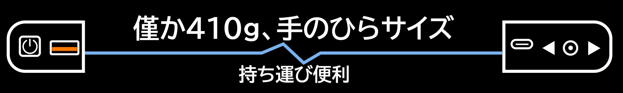 高性能ながら、わずか410gの軽さと手のひらサイズで、持ち運びやすいです。