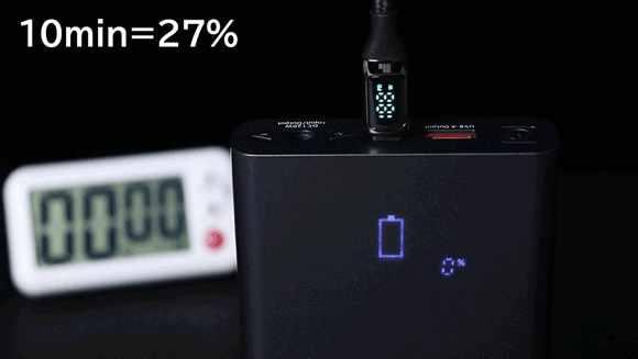 わずか10分で「BRAM」を27%充電できて、スマホを1日使用するのに十分です。