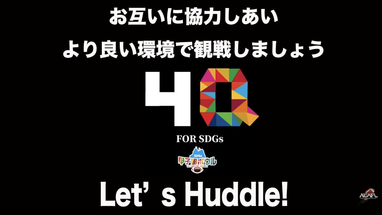 甲子園ボウルでは昨年の大会から出場する両チームへお願いをして場内の注意喚起ビデオを選手の言葉で来場されたお客様に問いかけています。