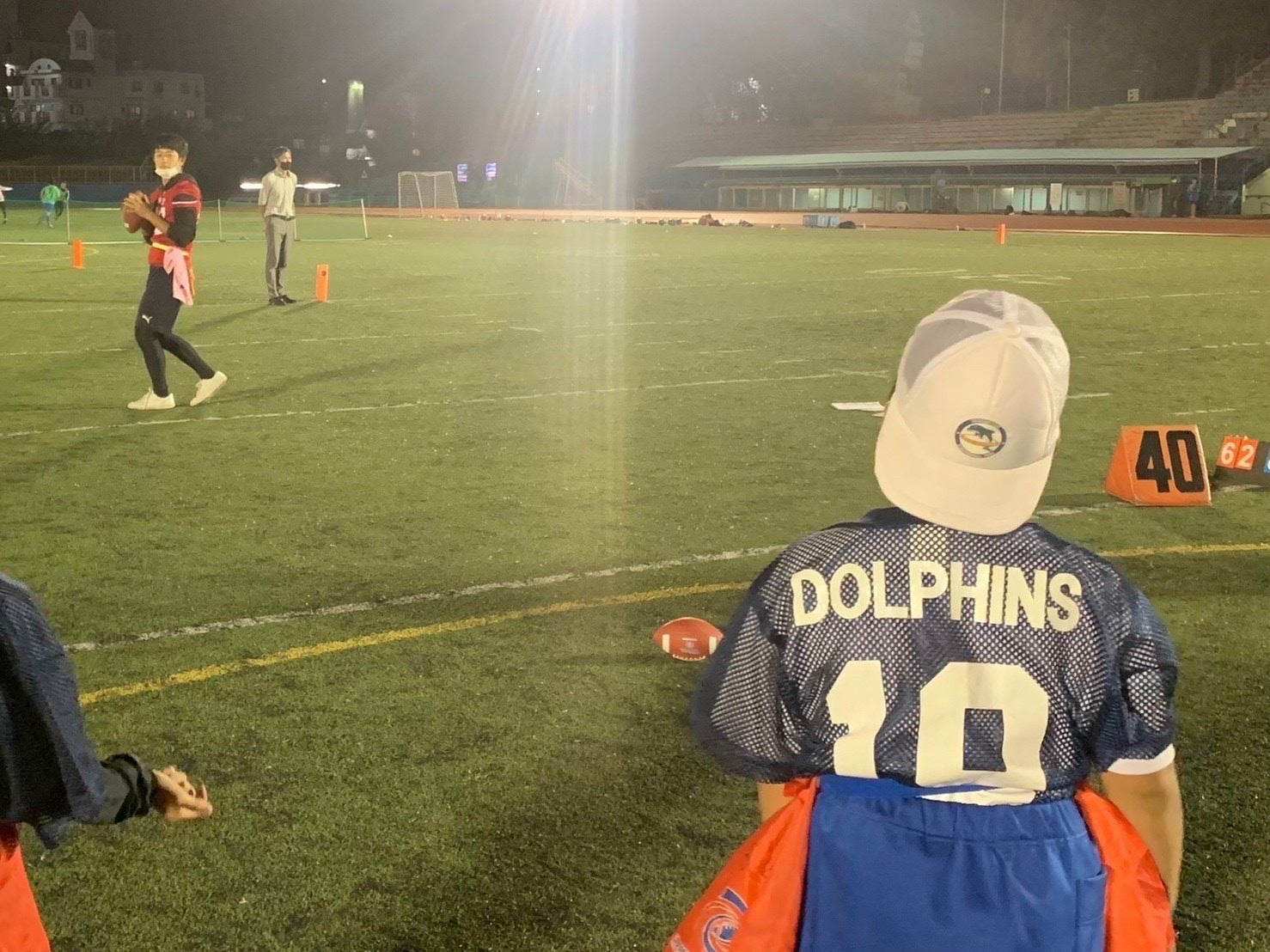 今年10月に小学生のフラッグフットボールのチームである王子ドルフィンズの練習の支援を行いました。11月には芦屋市小学校スポーツ交流会のお手伝いに参加しました。