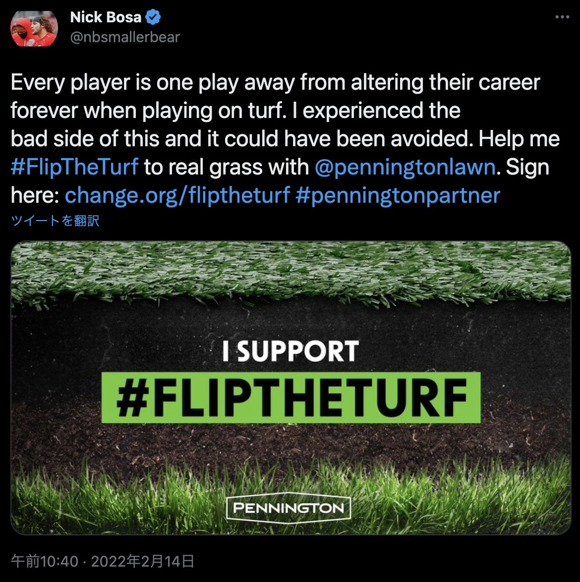 これは今年の2月14日にポストされた49ersのDEニック・ボーサのツイート。
