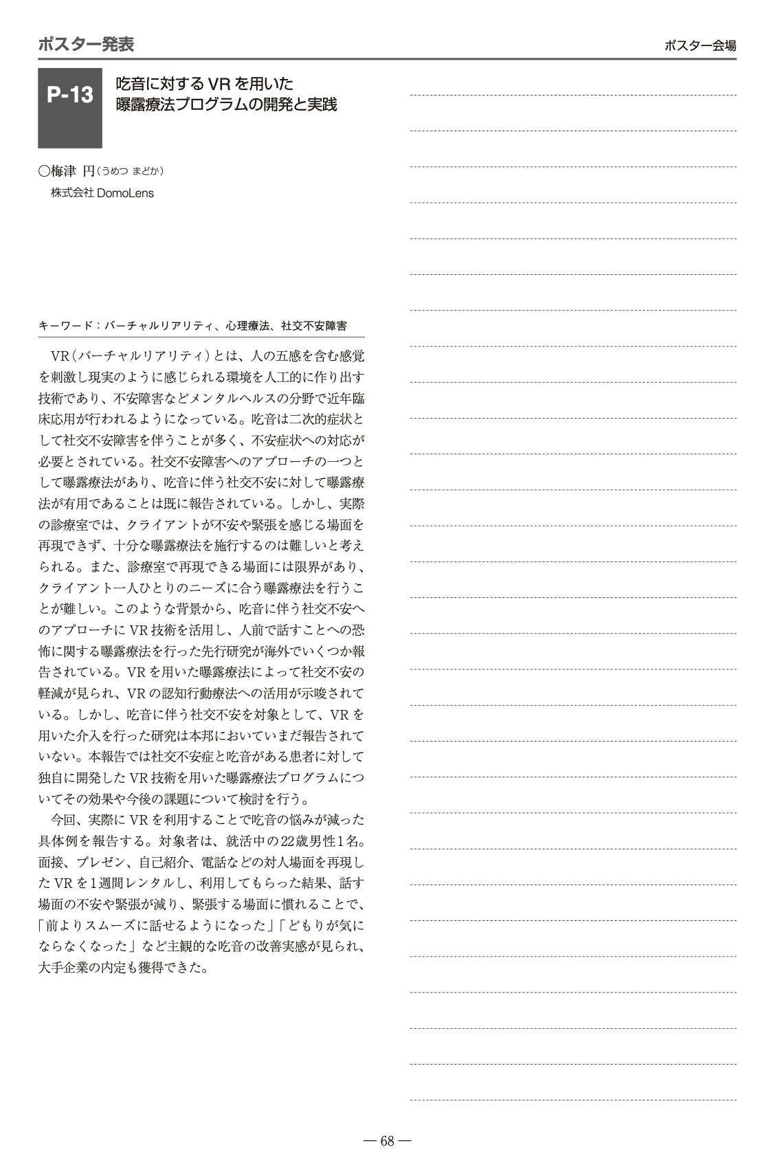 それが実現すれば、新たな吃音の治療法としてのVRプログラムが本気で実現できそう、そんなところまで5年間で、ようやく来ました。そして、今年の吃音の学会である日本・吃音流暢性障害学会では、オンラインでポスター発表を行い、VRを使うことでの吃音に関する変化などを発表させて頂きました。