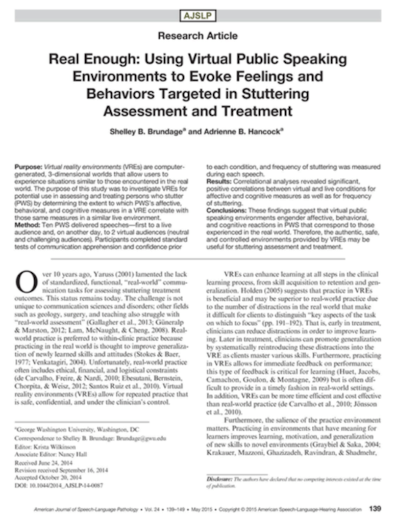 医療応用、吃音の治療としてVRを活用できるようにするには必ず必要となるのが