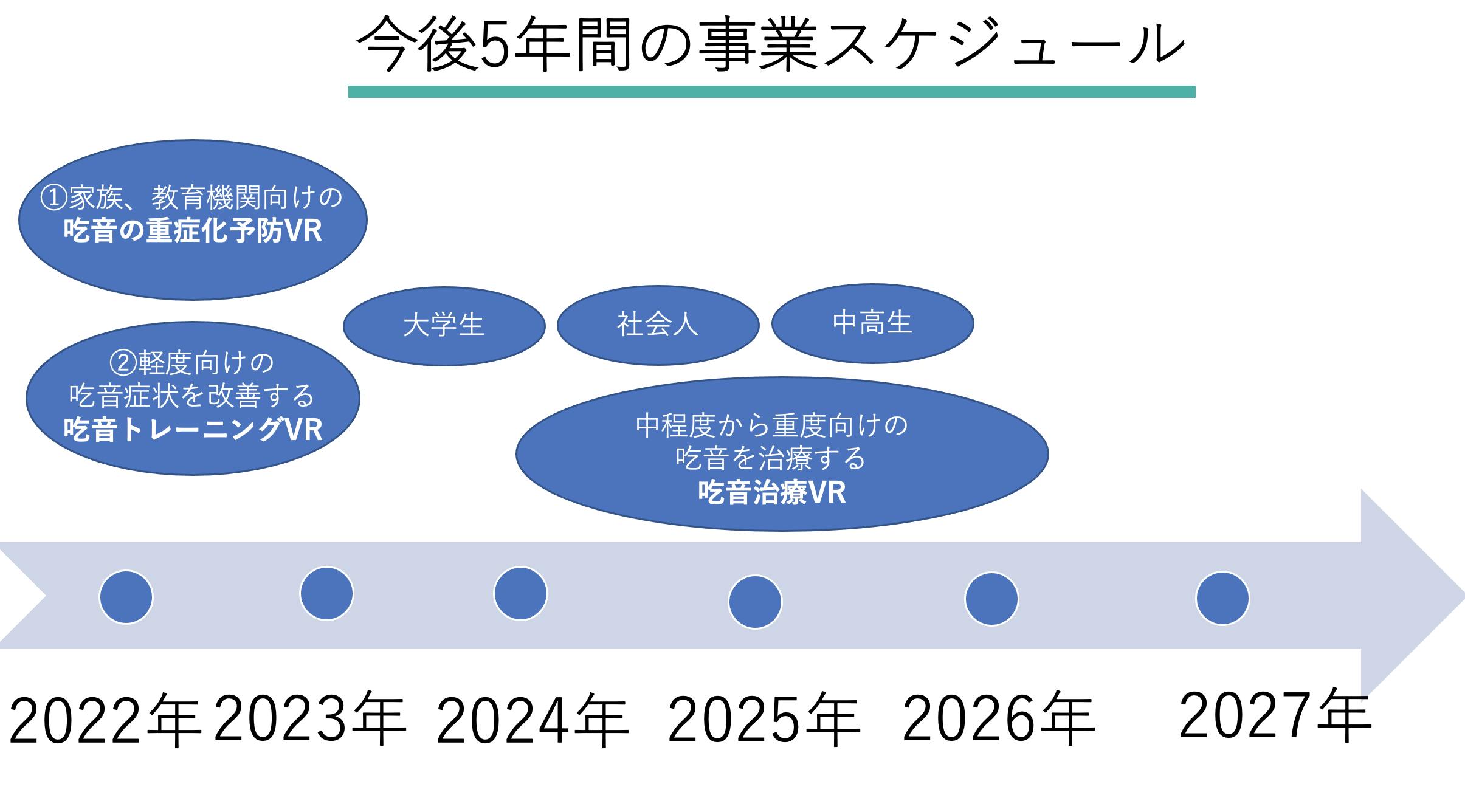 吃音の重症度を評価する時に使用する「吃音進展段階表」というものをもとに吃音の軽度、中程度、重度の人向けに今後、VRコンテンツの開発を進めていきます。