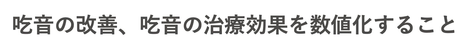 吃音の改善、吃音のトレーニングをしても、多くの人が感じるが、本当に改善に近づいているのか分からないということです。そして、VRがどんな吃音の症状、どんな悩みのある人に特に効果があるのか、VRを使う中での吃音の改善実感を得られるようになるには、少しずつ、吃音の改善に近づいているという主観的な満足感と、客観的な数値での変化、これが重要だと考えています。