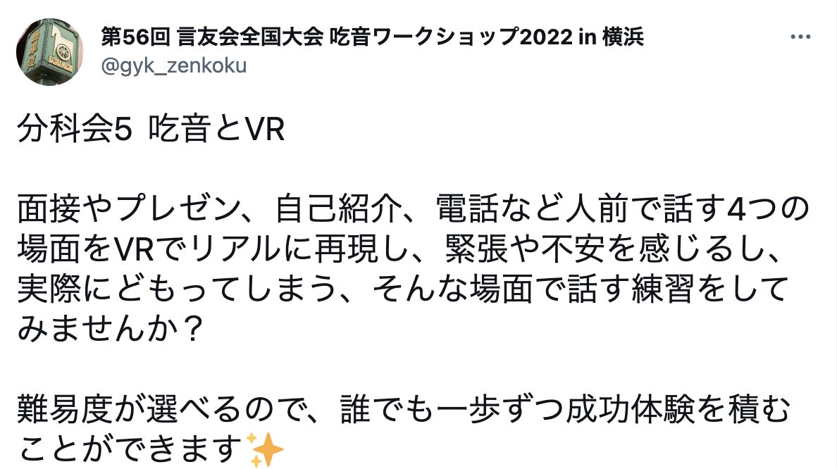2022年の12月に横浜で開催された吃音全国大会でVRの分科会を行いました。