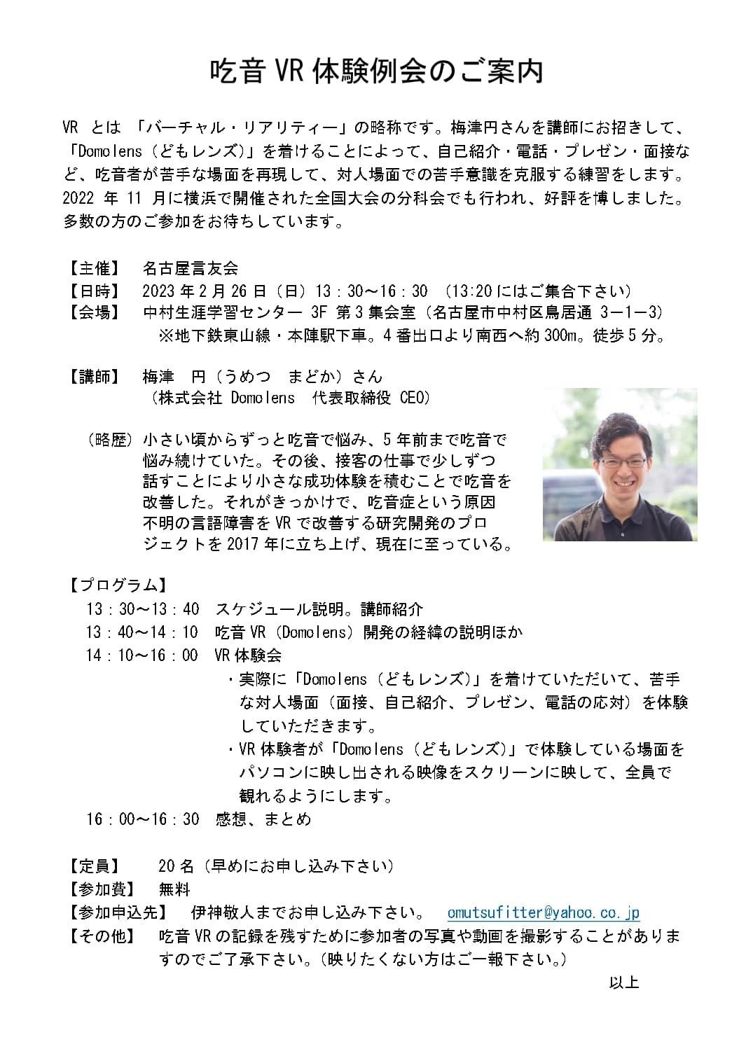名古屋言友会にて、吃音VRの体験会を開催することが決定しました!