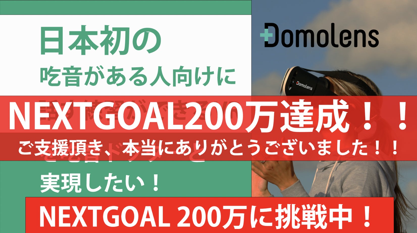 【速報!】吃音VRのクラウドファンディングでNEXTGOALの200万を達成しました!!