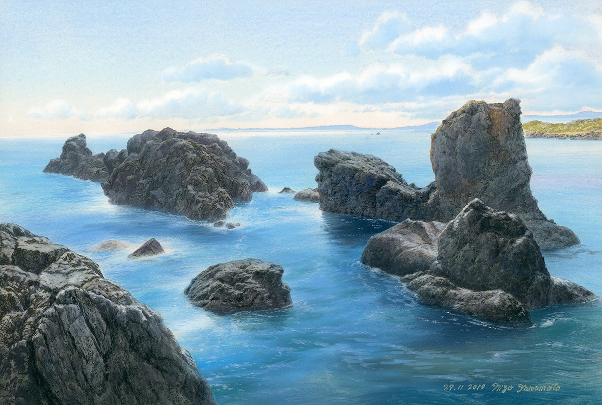 これまで『天空の城ラピュタ』『火垂るの墓』『もののけ姫』『時をかける少女』等、数々の名作アニメーション映画の美術監督として、多くの人々の心に残る背景画を描いてきた山本二三(やまもとにぞう)。2010年より、故郷の長崎県五島列島の風景を描くライフワーク『五島百景』に取り組んできました。様々な仕事の合間を縫って制作を続け、ついに2021年、約10年をかけて100点が完成しました。