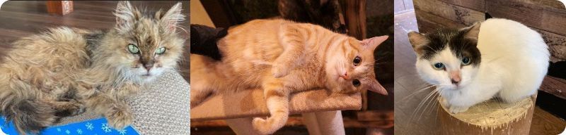 当施設では、他の施設では受け入れられなかった、老猫、子猫、野良、雑種、キャリア猫(エイズ、白血病)もできる限り受け入れております。
