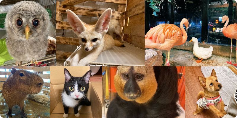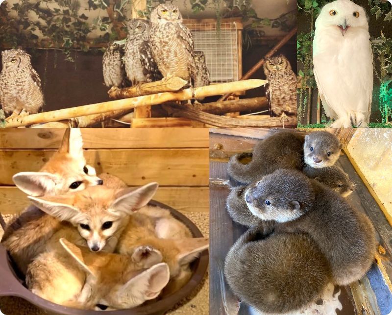 施設2階には60羽ほどの梟、14匹のコツメカワウソ、フェネック、カピバラ、猿、小鳥などのエキゾチックアニマルも多数保護しており、特に肉食動物の餌代が高騰しております