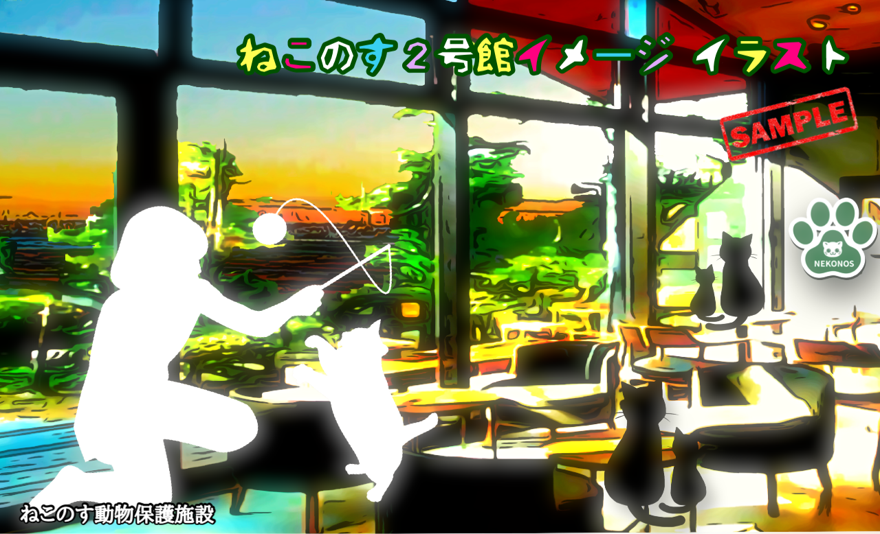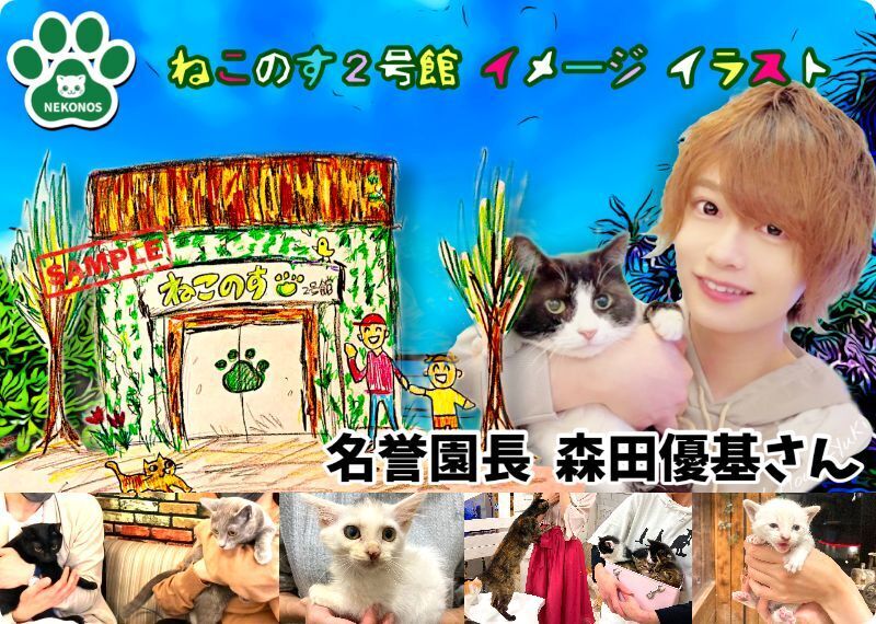 「ねこのす2号館イメージ」この度、緊急で応援に駆けつけてくださったアニマルハウス ユーキ様には、心より御礼申し上げます。この度、ねこのすの名誉園長になってくださいました。