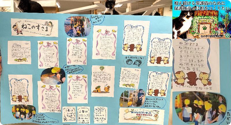 2022/10/28 14:38先日、ご近所の小学校が社会科見学(町探検)で、私たち「ねこのす」に、ご訪問くださり、後日、素敵なお手紙を送ってくださいました^^スタッフ一同、動物一同、感動です!私たちも昔を思い出して、とても懐かしい気持ちになることができました、お役に立てて本当に嬉しく思います。お手紙は「ねこのす」の階段の所に飾らせていただきました、またぜひ、来年もいらっしゃってください。クラウドファンディング、残り時間が少なくなりましたが、何卒、どうかよろしくお願いいたします!クラウドファンディング11月3日まで↓https://camp-fire.jp/projects/624492/preview?token=2hnf0rog あきらめずに頑張ります!ねこのす動物保護施設 もっと見る