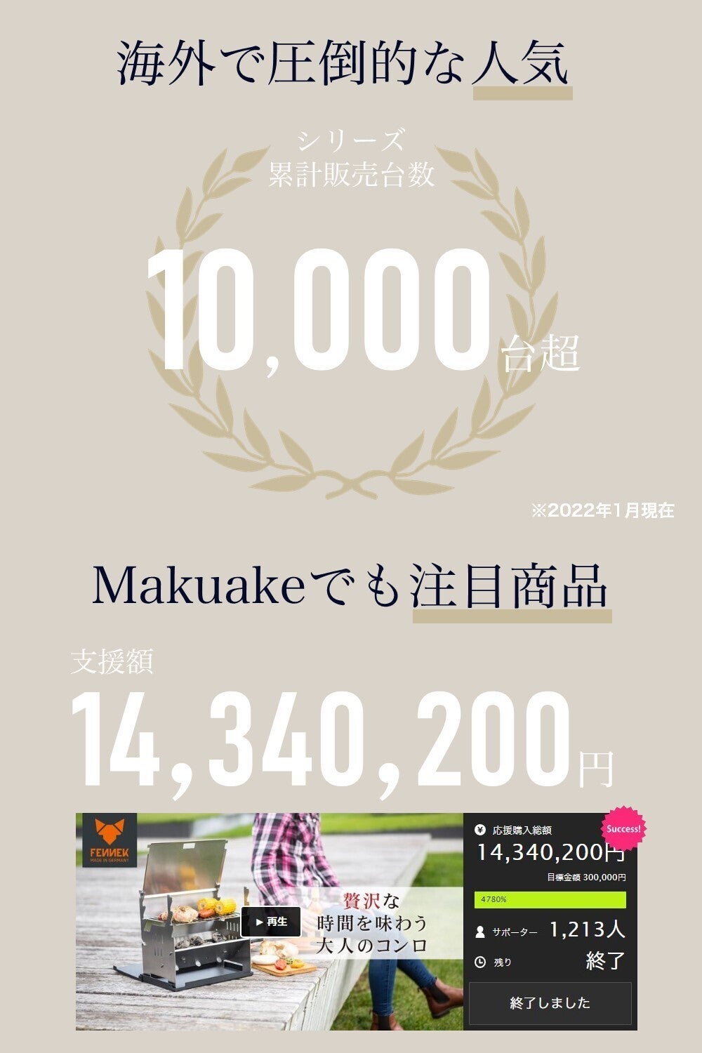 「たくさんの日本の人々に、この感動を味わって欲しい。FENNEK Grillでもっとバーベキューを楽しんでください!」