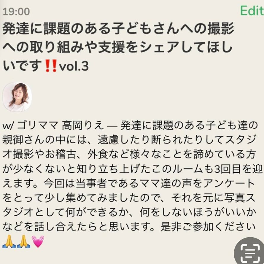 2024/04/07 23:06【まずは知ること!!セミナー開講します!】久しぶりの活動報告です!いろいろな方とお話ししていると「知らないからできない」「知識がないから怖い」「どこで何から情報を得たらいいかわからない」などの声を聴くことが多くなりました。そして皆さんおっしゃるのが「ゴリママの知ってることでいいから教えて~」(笑)いやいや、私なんかが・・私ごときが・・こんな程度の知識で?!とずっと躊躇しておりましたがさらにお話ししていると私のカメラマンの30年の経験談だけでも「へ~~!そうなんだ!!」と言われることが多くそれなら専門家と二人でセミナーしようと思いやっと形にすることができました!支援の必要なお子さまをお持ちのご家族へのアンケートの回答(97名になりました!ありがとうございます!あと3名だれか~~!!)から抜粋させていただくとプロの写真を撮っていないのはなぜ?という回答がこのようになっています。やっぱり知ることが大切だと実感しました!ゴリママはプロのカメラマン向けのセミナーを。そして講師として森田智子様をお迎えして誰でも受講できる基礎編セミナーを開講することとなりました。まずは基礎編から!!これを知っておくだけで急増している発達障がいと言われているお子さまとのコミュニケーションにも役がたつと思います。是非こちらのフォームからお申し込みください!https://forms.gle/TA9vWyJKXCHPGNZP9一緒に住みやすい地球にしていきましょう!!*講師紹介:森田智子さまから一言 障がいがあっても記念写真を撮ることをあきらめないで欲しい思いから、heart freeフォトグラフを主催して、各地のフォトグラファーやどんな衣装でも手掛けていただけるデザイナーとも提携して1年が経ちました。美容師として、障がいがある方を対象に訪問カットをして19年目、延べ5,000人ほどになりました。最重度の医療的ケアをお持ちの方から知的、発達、精神の方まで数年前から高齢の方まで、施設やご自宅へ。皆さん、七五三や成人式など節目の記念写真を撮っていない方が多く、私に何か出来ないかな?と思ったのがきっかけでした。詳しくはホームページに載せていますが、私の息子も撮っていません。私の生き方は息子から学びました。障がいのある息子を産んだから福祉に関わり、色んな活動をしてきました。いよいよ集大成かな?なんて、思い始めてます!障がいのある子どもを産んでも、不安のない誰でも好きなことができる社会へ「自分らしく生きる」素敵なお写真を撮ってもらいたくなる、撮りたくなるお手伝いが出来たらと思います!!SMILEMOMOhttps://smilemomo.com もっと見る