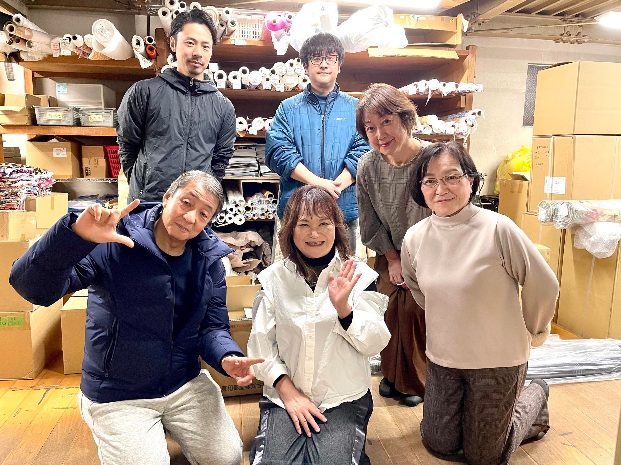 後列左から右に・・平田染工の雑賀社長様・西村取締役様・はるみさん(NOERUのRU)