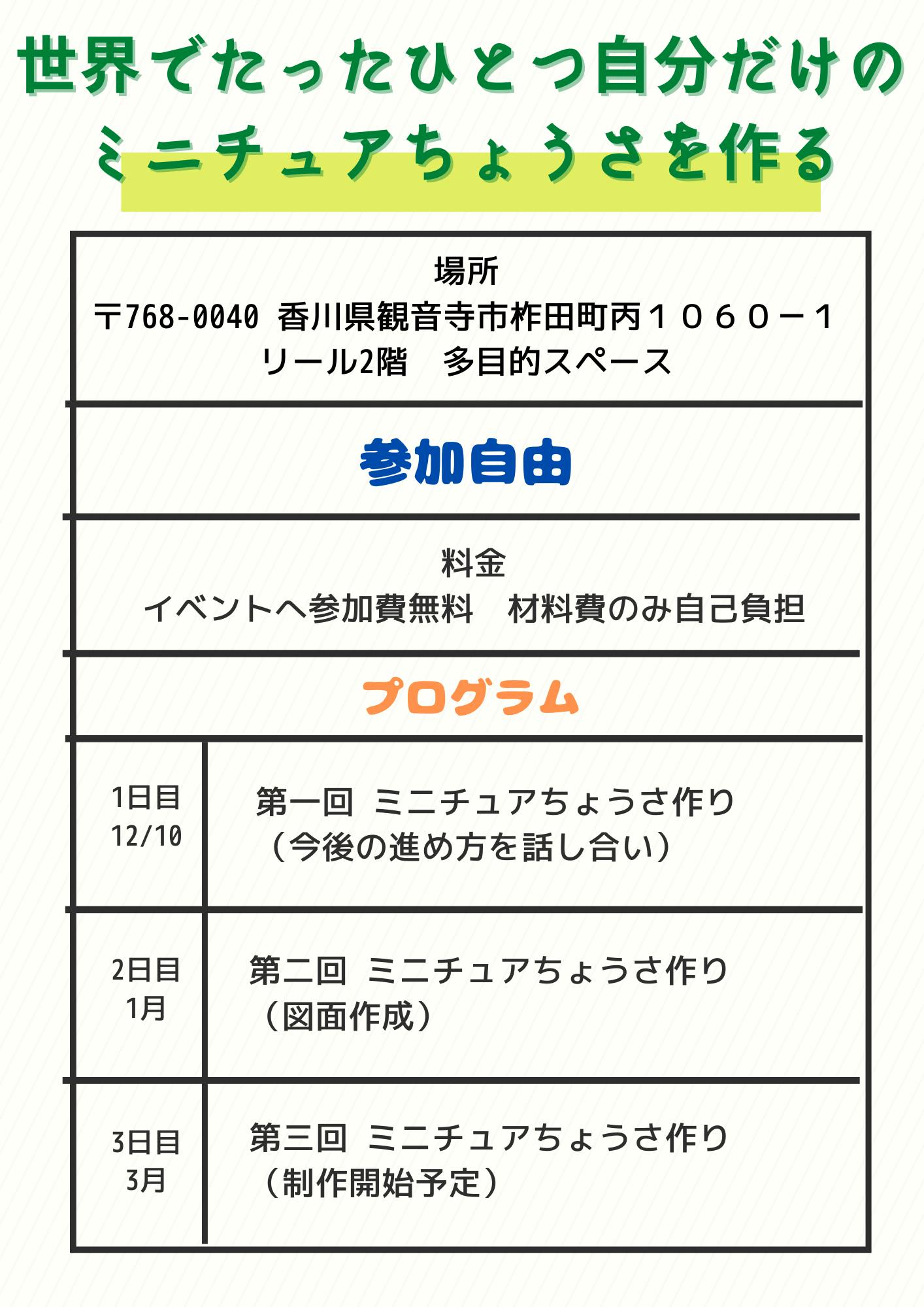 そこで、この活動をもっと拡大したいと思い、この12月からミニチュアちょうさを実際に作るイベントを開催する事になりました!