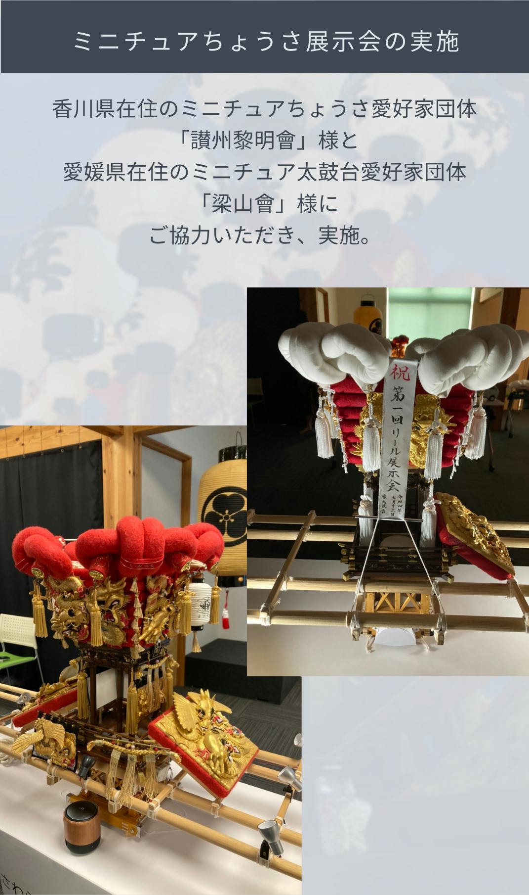 これまでに、「ちょうさ祭り」について語り合う「リレトーーク!」や、ミニチュアちょうさの展示会など、ちょうさ祭りに関するイベントを企画し開催しました。