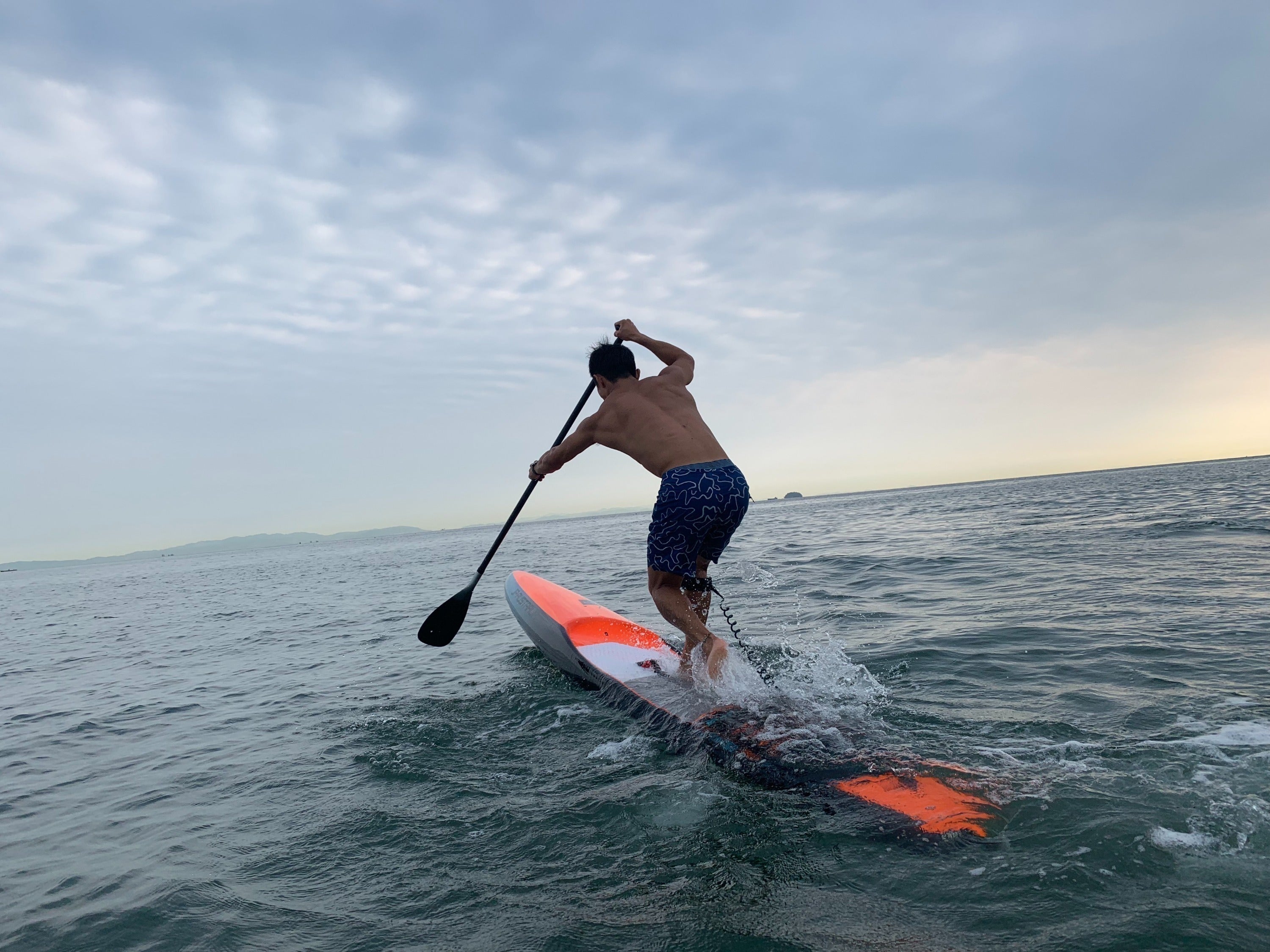 当時お世話になっていた先輩に、2016年にSUP体験に連れて行って頂きました。初めて経験する『ボードの上に立ってパドリングする』というシンプルなアクテビティに、私は強烈なインパクトを受けました。滑るように海面を漕いでいるとどこにでも行けるような感覚があり、また海面の不思議な浮遊感が心地よく心も体もリフレッシュできました。それからは学生生活を送りながらも、頭の中は常に海のことを考え、瀬戸海へ通うようになりました。