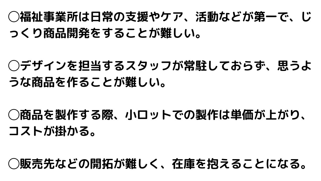 そして何よりも、障害のある方や福祉施設職員、デザイナーやアーティストを結ぶことのできる場にしたいとご相談いただきました。