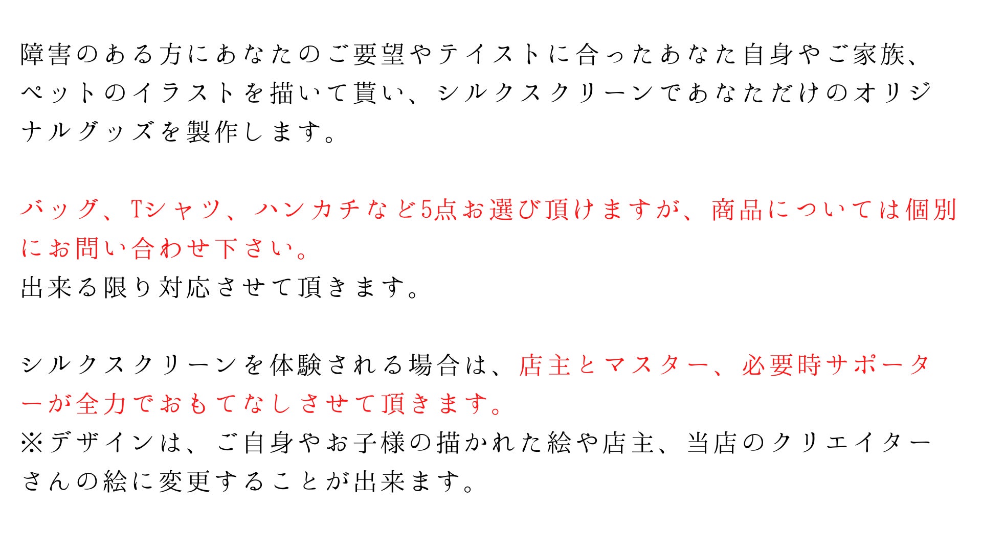 ◯当店は障害のある方の作品を活かした商品を製作してお客様へ提供することで、
