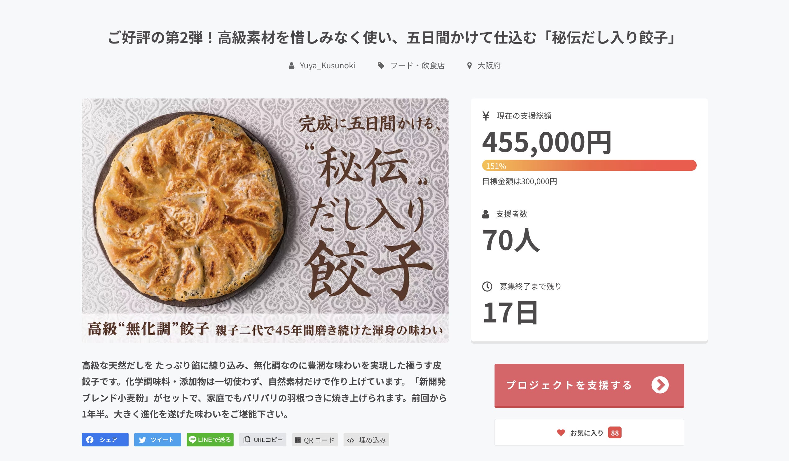 先日、スタートしたプロジェクトですが皆様の応援のお陰で無事に100%を達成し、現在151% / 70名の方にご支援をいただきました!