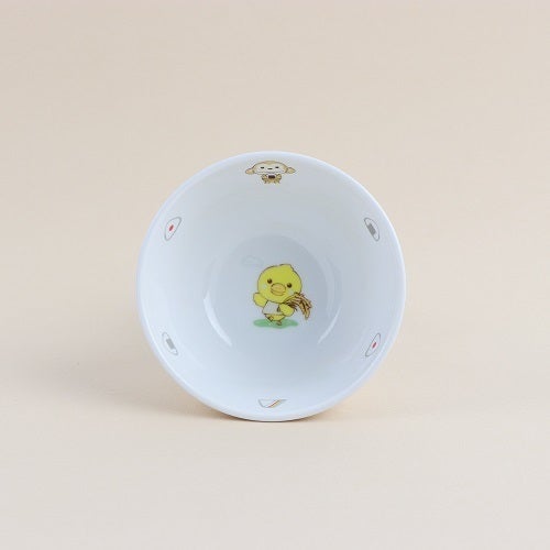 稲穂を持つヒヨコを底面に。穀物に関連する絵を散りばめています。