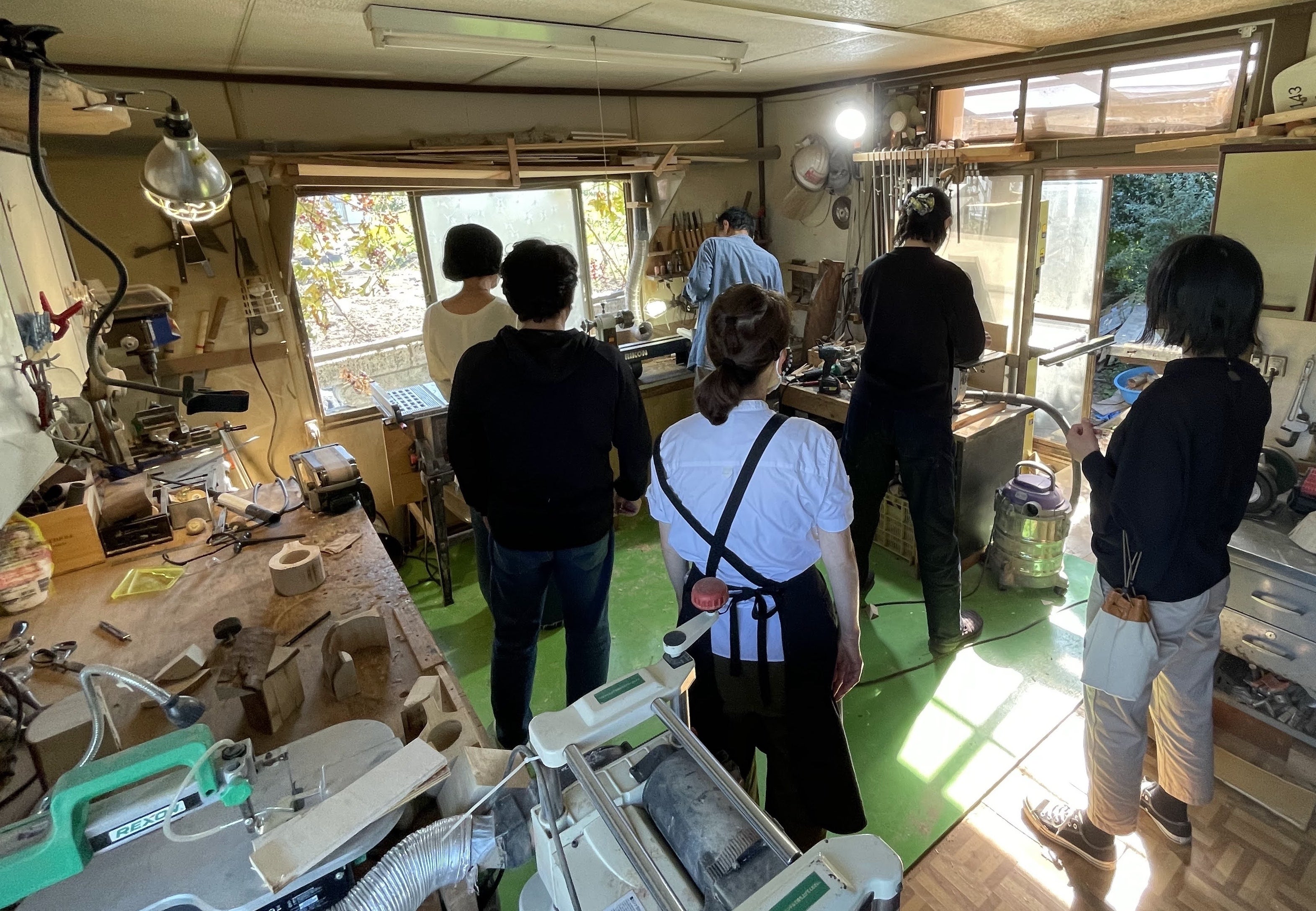 ワークショップは、以前よりお世話になっている木工デザイン工房のナガワクラフトさんにご協力いただき、工房の作業場をかり専門の講師の指導のもと、安全に留意して木工作業を行いました。