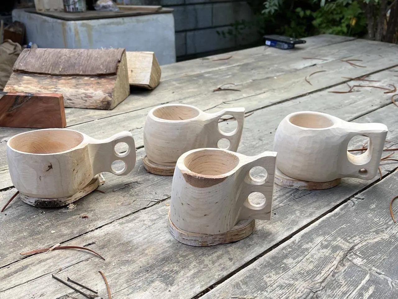 先日、ご紹介した白樺の樹皮を加工して創る樹皮細工とは別に、白樺の幹の材木をつかったククサ(木製のカップ)のワークショップも開催しました。木のぬくもりを直接感じられるククサは、自分で白樺の原木から削り出して創ることで、世界に一つだけの自分のククサができるのが魅力で、ワークショップの人気も高く、今回も県内外からワークショップの定員になる5名の方が参加されました。