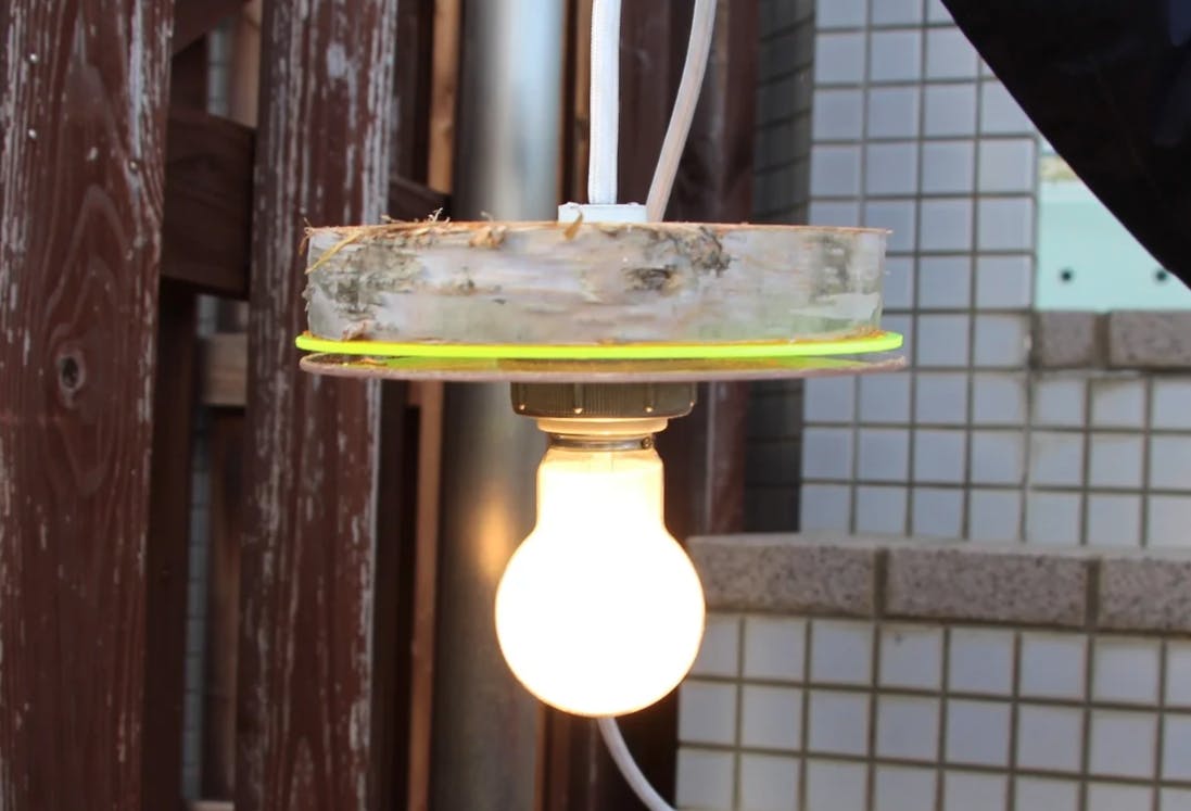 最終回の第5回はインテリア編ということで、当所が伐採した白樺材を活用してランプシェードを製作していただきました。白樺はインテリアに映えるので、照明にはもってこいです!