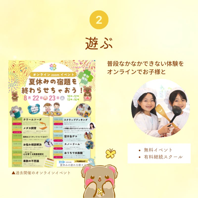 ▲外出するとなると準備や兄弟の時差などでなかなか時間が持てない方でも、オンラインで気軽に学ぶことが出来ます。