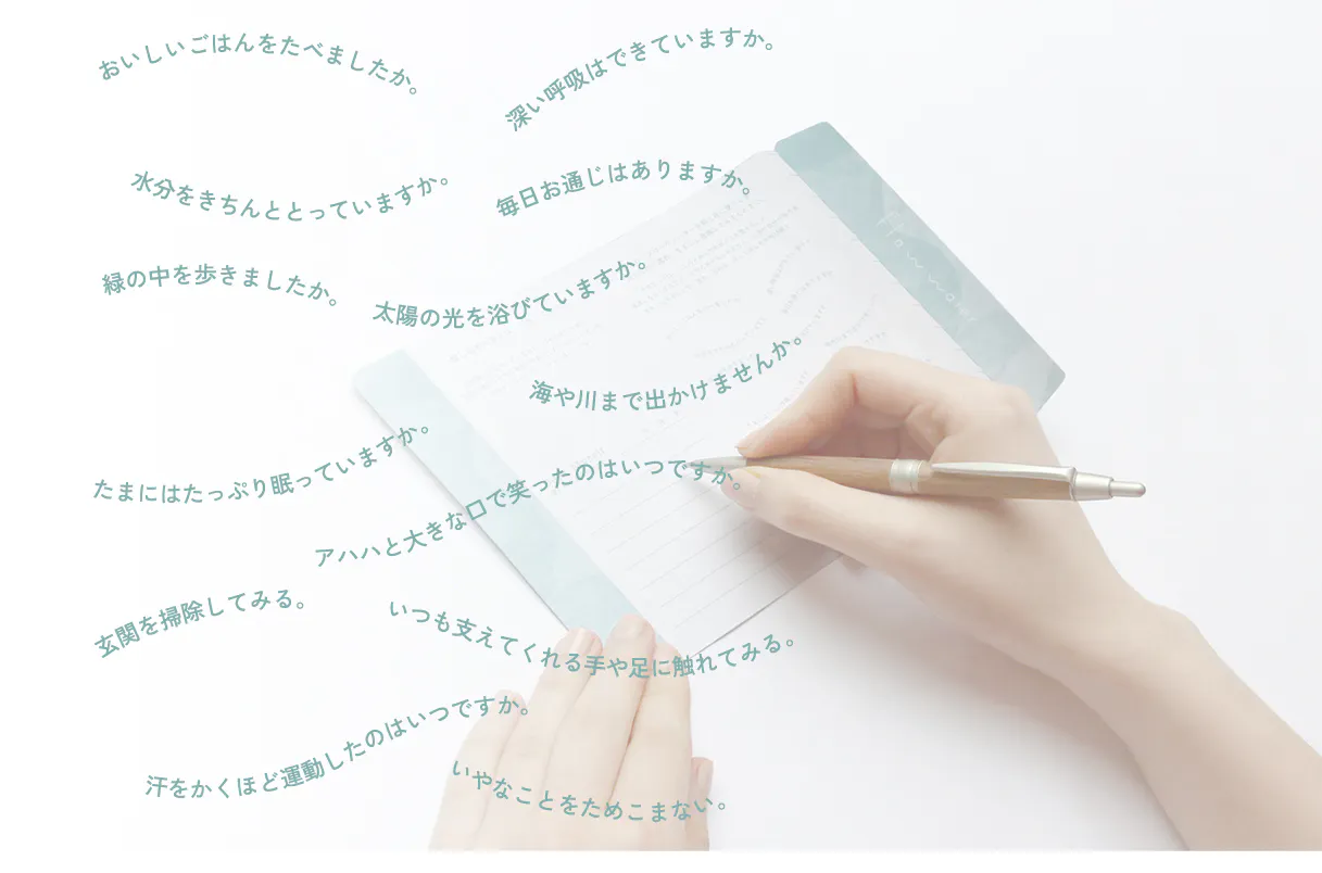 叶えたいことがあるとき、それを支えるのは心と体。凝り固まっていては、ことはうまく運ばない。調子の波があっても、暮らしの中でそれぞれのペースで整える。そんなときに寄り添うことができたら。