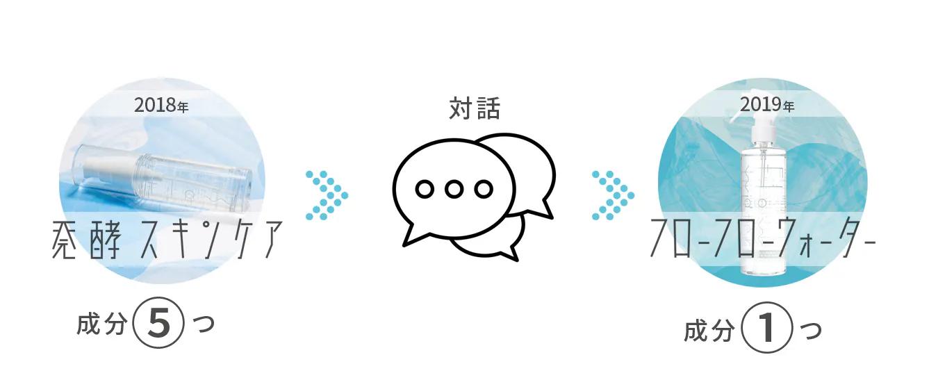 そこで、余計なものは入れない、成分は厳選して5つのみという「発酵スキンケア」をリリースしました。そして、ユーザーと向き合い、さらなる改良を目指します。