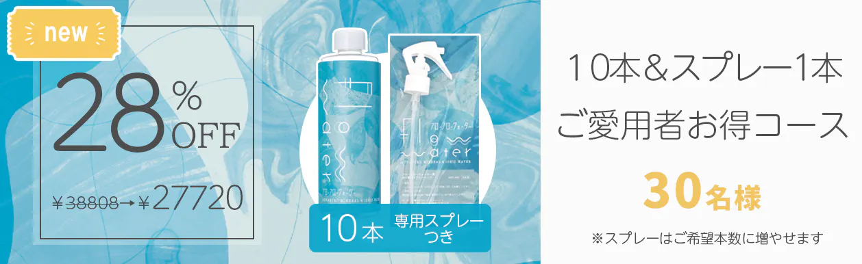 着目したのは化粧水の大部分である「水」。発酵エキスと相性のよいものはないだろうか。探しながら様々な出会いがあり、ある水に至ります。” きっと必要な人がいる ” と思い商品化したのがフローフローウォーターです。