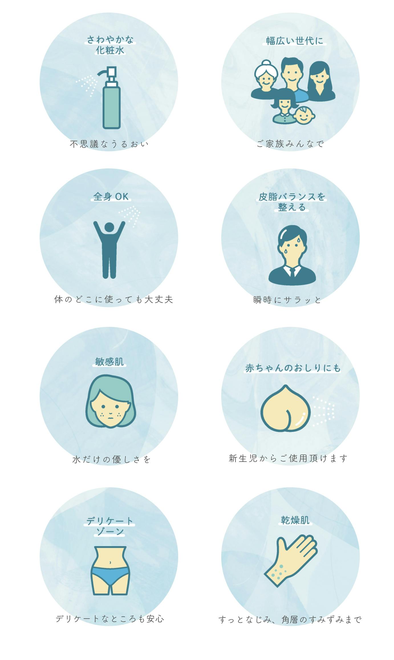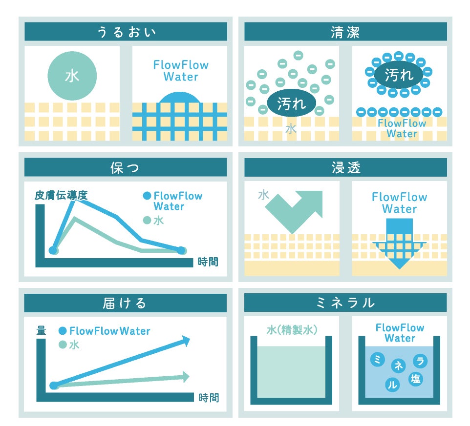 フローフローウォーターは、水のみを成分とした化粧水です。未来のお肌のことを考えて、シンプルに、清潔に、うるおいを。肌本来が持っている力を引き出すための、素肌ミニマリズムです。