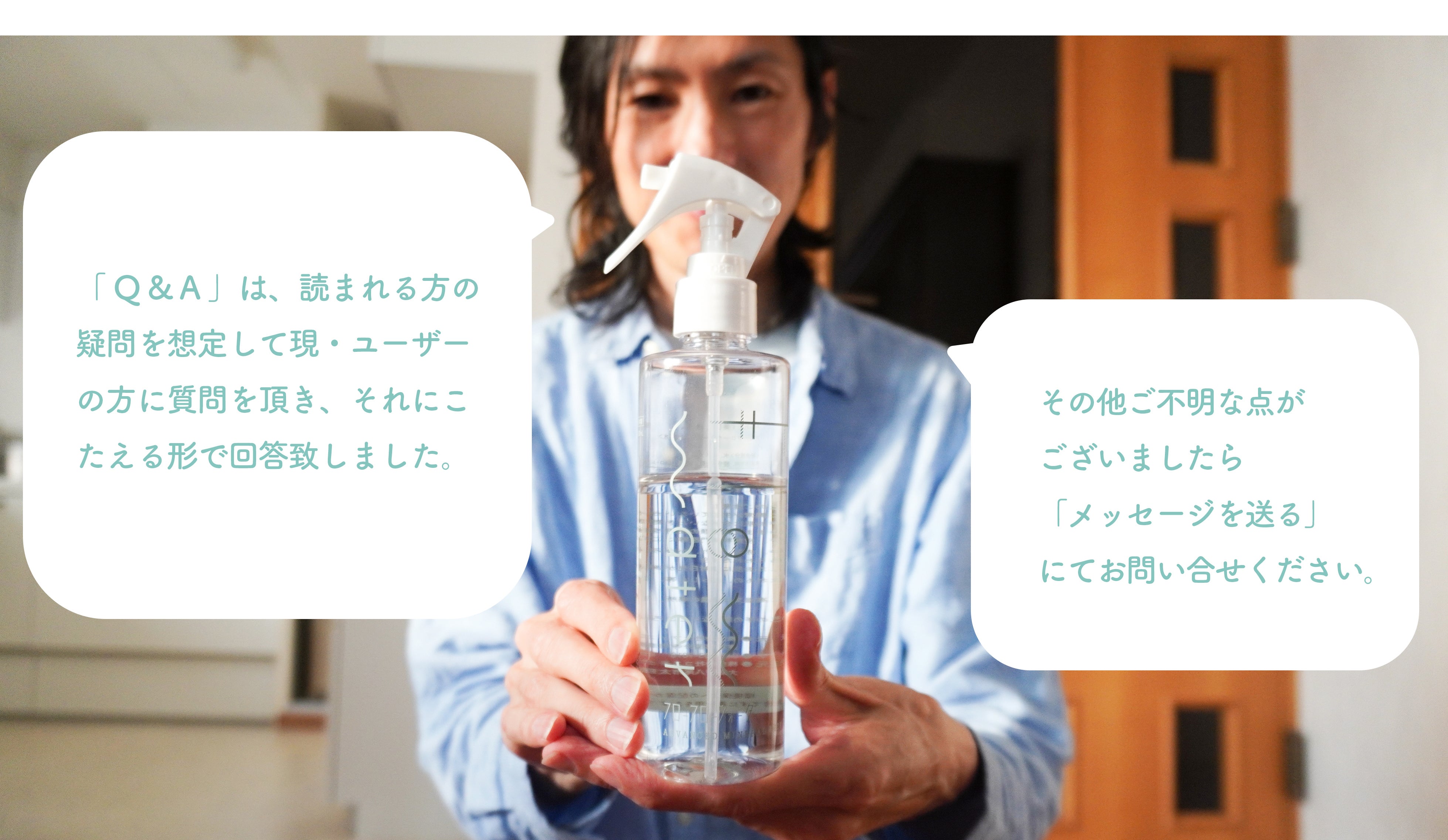 A:非刺激性の水ですが、無刺激ではありません。気になる場合はよりやさしい使い方もお伝えします。お気軽にご相談ください。