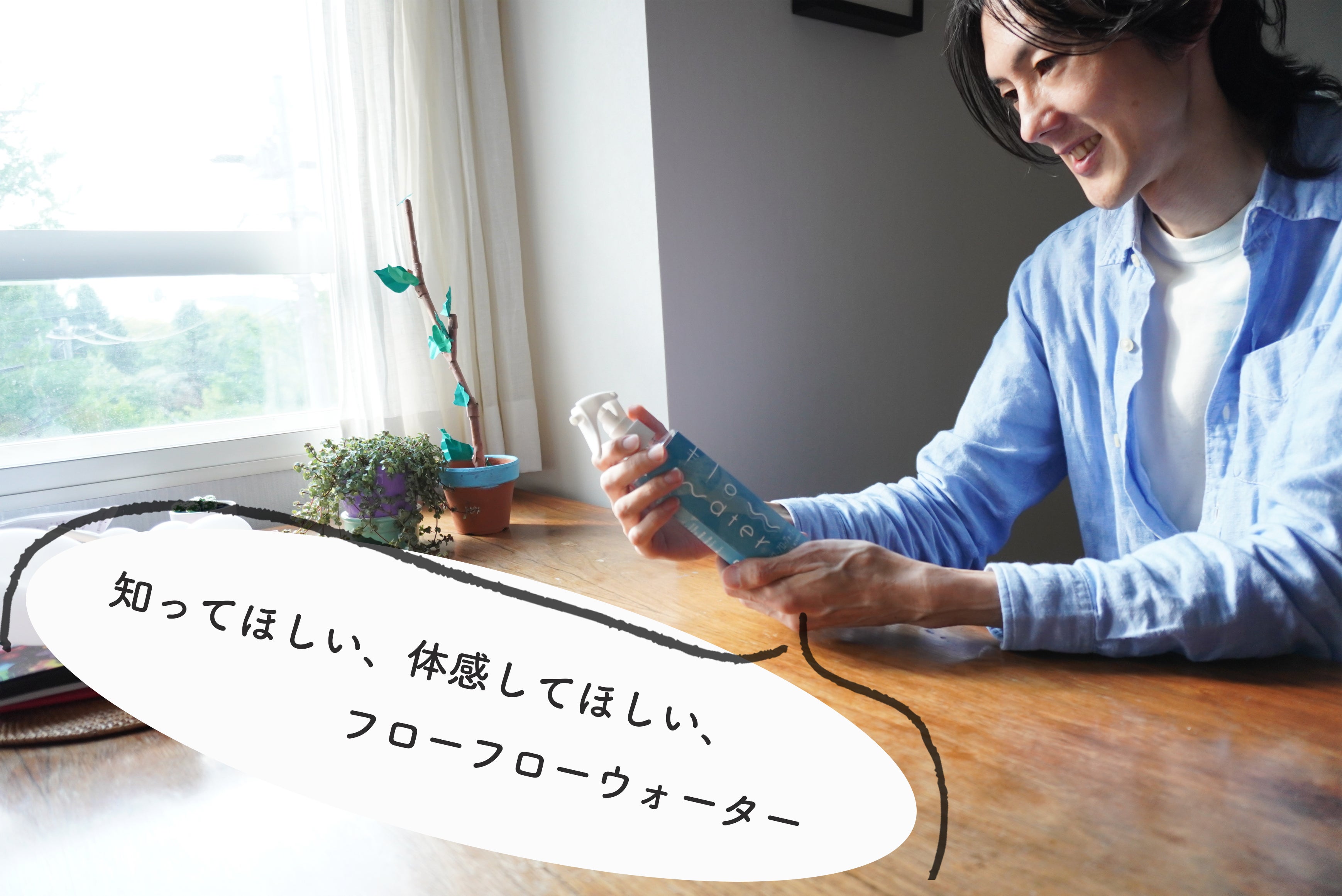 2019年、水のみを成分とした化粧水「フローフローウォーター」をつくりました。商品ができた後、コロナによって社会はとじていき、計画は次々に先送り。それでも、ありがたいことにファンも増えてきました。しかし、もっと知ってほしい。