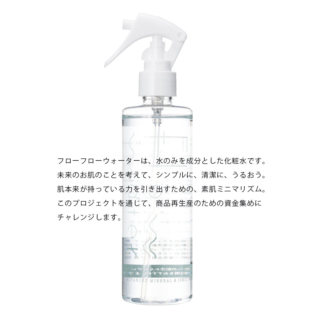 知ってほしい、体感してほしい、不思議なほどたくさんの機能がある化粧水のこと。発売から3年目となりました「フローフローウォーター」。商品再生産のための資金集めをさせてください。水で素肌を取り戻す、究極のミニマルスキンケアをあなたに。