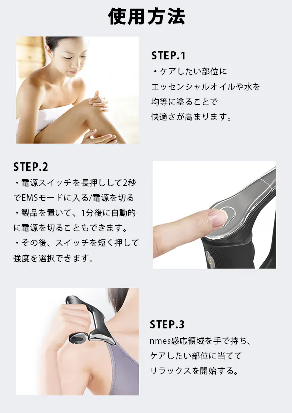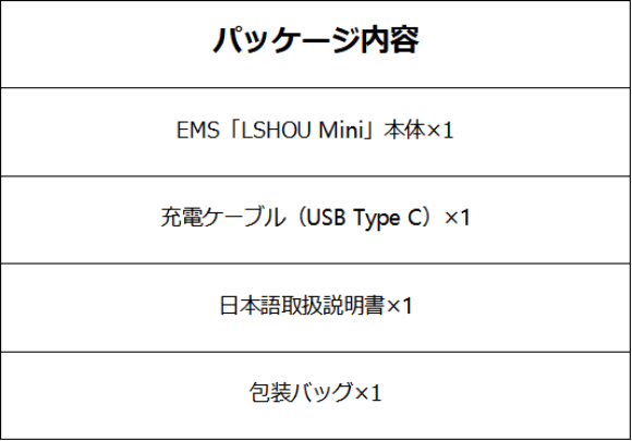 ※初めて「LSHOU Mini」を使うときは、低いレベルからの使用をおすすめします。体の負荷能力に応じて徐々にレベルアップしていきます。